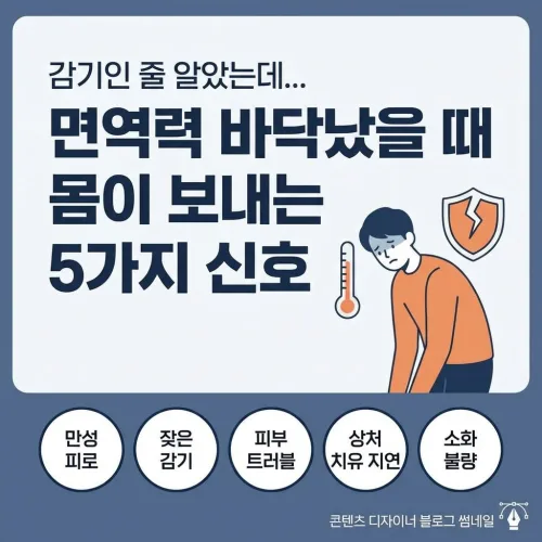 감기인 줄 알았는데... 면역력 바닥났을 때 몸이 보내는 5가지 신호, 혹시 최근 들어 자꾸만 으슬으슬 몸이 무겁거나, 평소와 다른 증상들로 고생하고 계신가요? 잦은 피로, 설명할 수 없는 통증, 혹은 쉽게 낫지 않는 피부 트러블 등을 겪으면서도 ‘그냥 피곤해서 그렇겠지’ 하고 넘기시는 분들이 많습니다. 하지만 이는 단순한 피로가 아니라, 우리 몸이 면역력 바닥을 찍었을 때 보내는 중요한 구조 신호일 수 있습니다.